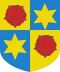 aux premier et dernier d'or, à une rose de gueules; aux second et troisième d'azur, à une étoile d'or.