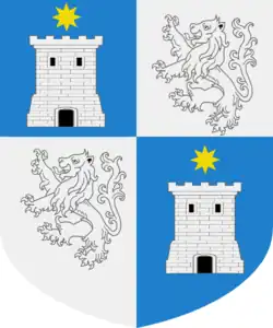 Les armes des Romieri sont écartelées, aux 1 et 4, d'azur, à une tour d'argent, ouverte et ajourée de sable, sommée d'une étoile (8) d'or, aux 2 et 3, d'argent, au lion au naturel.