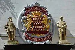 Blasonnement De gueules, semé de fleurs-de-lis d'or. Supports: deux hermines. Casque taré de profil orné de ses lambrequins et sommé d'une couronne de comte[1].