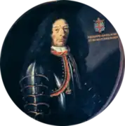 Philippe-Guillaume de Montrichard (1616-1688).Philippe-Guillaume de Montrichard (1616-1688), gouverneur de Nozeroy, seigneur de Sirod, grand gruyer général pour le prince d'Orange, capitaine de dragons, nommé chevalier de l'ordre de Saint-Georges (1662)[17]. Il épouse en 1649 Charlotte Mareschal de Bouclans (-1712). De la Guerre de Trente Ans, il participa à la bataille de Rocroi d'où il reviendra en héros. Philippe-Guillaume de Montrichard fut comme son père et son aïeul gouverneur de Nozeroy, capitaine de deux cent dragons et commandant en chef de l'arrière-ban du grand canton de la province dans les montagnes en 1669. Tout comme son père Roland de Montrichard (1586-1641), il fut assiégé en 1668 dans Nozeroy pendant la campagne de Franche-Comté menée pour le compte du Roi Louis XIV par Louis II, dit le grand Condé. À la manœuvre c'est Jean de Watteville un noble franc-comtois qui aide Louis XIV à la reconquête de la province en proposant au gouverneur de Nozeroy de se soumettre comme le décrit de ces quelques lignes Désiré Monnier (1788-1867): "Au mois de février 1668, Besançon, Dole, Salins, le château de Joux, Gray et d’autres places s’étaient déjà rendus à Louis XIV, que plusieurs lieux moins importants tenaient encore. Philippe-Guillaume de Montrichard, d’une famille qui, depuis 1492, fournissait des gouverneurs à la ville et au château de Nozeroy, avait alors le soin de la défense de ce château et de cette ville. Dom Jean de Watteville, abbé de Baume, secondait de tout son pouvoir la soumission de la province au roi de France; il offrit à ce capitaine une récompense au nom de ce souverain s’il ouvrait les portes de Nozeroy à la troupe française qui était à Château-Vilain, et s’il l’admettait comme garnison. Philippe-Guillaume de Montrichard, indigné de cette proposition, répondit qu’il ne traiterait jamais avec un parjure, et qui si, par le sort des armes, Watteville se rendait maître de la place, Philippe-Guillaume de Montrichard ferait sauter et la place et le traître. Ayant échoué de ce côté, Jean de Watteville se tourna vers les habitants qu’il fit pratiquer secrètement; il les indisposa contre leur gouverneur et les menaça du pillage. Ceux-ci s’emparèrent de leur défenseur (ndlr Philippe-Guillaume de Montrichard), le remirent entre ses mains et reçurent l’ennemi dans leurs murs. Après la signature du traité d’Aix-la- Chapelle (en 1668), qui restitua la Franche-Comté à l’Espagne, des commissaires envoyés des Pays-Bas dirigèrent une information contre les membres du parlement soupçonnés de trahison. Philippe-Guillaume de Montrichard, entendu comme témoin, excusa les habitants, mais révéla l’odieuse conduite de Watteville"[18]. De cette union avec Charlotte Mareschal de Bouclans il aura dix enfants dont: 1° Nicolas-Jean-Baptiste de Montrichard (1653-1741), 2° Pierre de Montrichard (-), chanoine à la métropole de Besançon, 3° Pierre-Joseph Ier de Montrichard (-), major d'infanterie tué à la bataille de Crémone en 1702, sans postérité), 4°Antoine III de Montrichard (-), mort jeune à la guerre, 5° Charles de Montrichard, tué à la bataille de Cassano en 1705, 6° Dominique de Montrichard (-), religieuse Annonciade, 7° Christine de Montrichard (-), morte fille, 8°Jean-Baptiste de Montrichard (-1708), mort lieutenant-colonel, 9° Françoise-Prospère de Montrichard (-1697), Abbesse de Notre-Dame de Migette, 10° Madeleine de Montrichard (1699-1741), chanoinesse de Notre-Dame de Migette.