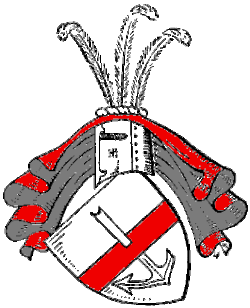 Le blason a une barre rouge dans le bouclier, à travers laquelle une ancre noire, mutilée sur le bras supérieur et gauche, est collée. Il y a 3 plumes de héron noir sur le casque, qui est recouvert de couvertures rouges et argentées.