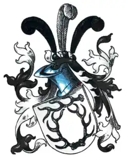 Les armoiries de la famille montrent en argent deux perches de cerf noir dressées avec des extrémités tournées vers l'extérieur, au-dessus desquelles une perche transversale de cerf noir avec des extrémités tournées vers le haut. Sur le casque recouvert de noir et d'argent, trois plumes d'autruche (noir-argent-noir).