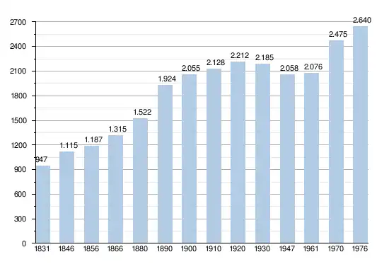- Sources : INS, Rem. : 1831 jusqu'en 1970 = recensements, 1976 = nombre d'habitants au 31 décembre.