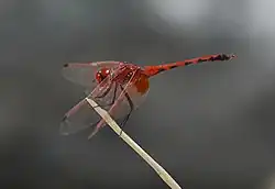 - La libellule globe-trotter (Pantala flavescens) est extrêmement répandue. Cette espèce n'est pas considérée comme menacée[36]