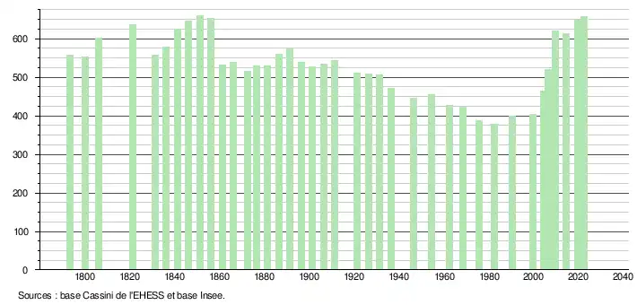 658 hab. (2022 en évolution de +5,62 % par rapport à 2016)