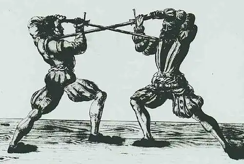 - ↑ (en) Roger Norling, A call to arms! 4 juillet 2012 : « Depuis au moins la moitié du XVe siècle, tout du long jusqu'à la Révolution française en 1789, les escrimeurs à l'épée longue se sont entrainés avec des fechtschwerter, aussi connues aujourd'hui sous le nom de federschwert, un type d'épée spécifique pourvu d'un ricasso évasé et de tranchants émoussés, utilisée spécialement pour l'entrainement et/ou la compétition. Toutefois, seuls 23 exemplaires connus ont été préservés jusqu'à nos jours dans diverses collections ».