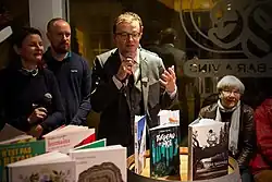 - Le prix Goscinny, attribué à Gwen de Bonneval et Fabien Vehlmann pour Le Dernier Atlas, leur a été remis lors de la cérémonie des Fauves. Profitant de cette tribune, les deux scénaristes ont souligné dans leurs discours la précarité grandissante du milieu pendant que les rejoignaient sur scène la centaine d'auteurs présents dans la salle qui ont caché leur visage d'une feuille blanche devant le message écrit sur les écrans du décor « Sans auteur, sans autrice, pas de BD »[5].