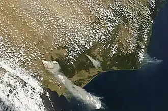 L'incendie le plus meurtrier de l'histoire de l'Australie se produit lors d'une vague de chaleur exceptionnelle. Les feux se sont déclenchés le samedi , date à laquelle plusieurs localités, dont la capitale de l'État Melbourne avec 46,4 °C, enregistraient leur plus forte température depuis 150 ans.