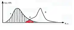 où Pf est la probabilité de défaillance, est la fonction de distribution cumulative de la résistance (R) et est la densité de probabilité de la charge (S).