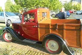 - camionnette avec un plateau en bois, avec les mêmes dimensions utiles que la fourgonnette. La charge utile était de 380 kg car le poids à vide était de 635 kg.