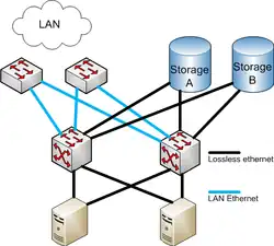 FCoE (Fibre Channel over Ethernet) est un protocole qui encapsule les trames Fibre Channel, provenant d'un réseau de stockage SAN, sur un réseau Ethernet[1]. La norme FCoE a été publiée en juin 2009[2].