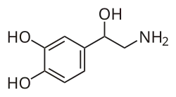 - Dans la division sympathique, les neurones sont principalement adrénergiques (c'est-à-dire que l'épinéphrine et la norépinéphrine sont les neurotransmetteurs primaires). Les exceptions notables à cette règle comprennent l'innervation sympathique des glandes sudoripares et des muscles arrectores pilorum où le neurotransmetteur des synapses pré et post ganglionnaires est l'acétylcholine. On retrouve également comme exception la medulla de la glande surrénale, où les cellules chromaffines fonctionnent comme des nerfs post-ganglionnaires modifiés. Au lieu de libérer de l'épinéphrine et de la norépinéphrine dans une fente synaptique, ces cellules de la médullosurrénale libèrent les catécholamines dans la circulation sanguine sous forme d'hormones[1]. Comme les autres composants du système nerveux sympathique, ces exceptions restent stimulées par les fibres cholinergiques pré-ganglionnaires.