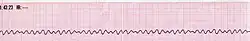 L'ECG enregistre une activité ventriculaire rapide et irrégulière prenant un aspect d'ondulations plus ou moins fines, mais sans complexes QRS organisés.