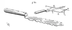 À Paris, depuis le commencement du XVIIe siècle, on posait les pierres de taille sur des cales de bois et on les fichait au mortier, c’est-à-dire que l’on faisait entrer du mortier dans l’espace vide laissé entre ces deux pierres par l’exhaussement des cales, au moyen de lames de fer mince découpées en dents de scie[1]. La fiche était cette espèce de grand couteau pointu et emmanché, dont la lame était « mince comme le fer d'une scie », qui servait à faire entrer le mortier dans les joints des pierres après qu'elles étaient posées[M 1].