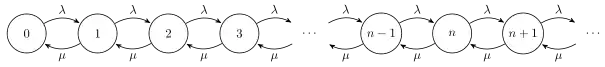 La chaîne de Markov à temps continu sous-jacente est la même que pour un processus de naissance et de mort[1] :