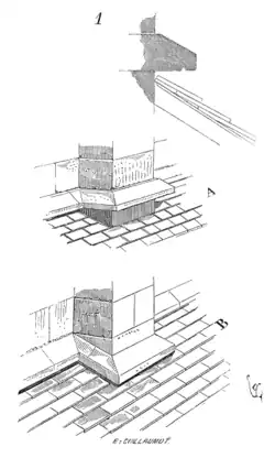 - une saillie de pierre destinée à empêcher l’eau pluviale glissant le long des parements de s’introduire entre les couvertures et les maçonneries[1].