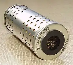 Le « filtre à huile » comprend la membrane filtrante proprement dite en fibres, son enveloppe métallique protectrice et le joint d'étanchéité en élastomère résistant[b]. Le filtre à huile est alimenté grâce à la pompe à huile. Il retient les particules, indésirables, d'une certaine taille, présentes dans l'huile moteur, afin de réduire l'usure. Certains filtres à huile sont équipés d'un bypass, indispensable en cas de colmatage, dû par exemple à un manque d'entretien.