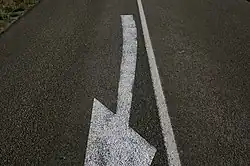 Dans le domaine de la signalisation routière horizontale, les flèches de rabattement annoncent le marquage qui fait obligation aux usagers circulant dans le sens de ces flèches d'emprunter la voie ou les voies situées du côté indiqué par celles-ci :
