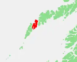 Localisation de Flakstadøya (en rouge) dans l'archipel des Lofoten.
