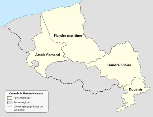 | Régions et espaces connexes | Flandre (Belgique), Flandre maritime, Flandre wallonne, Flandre zélandaise, Wallonie picarde, Nord-Pas-de-Calais, Wallonie |