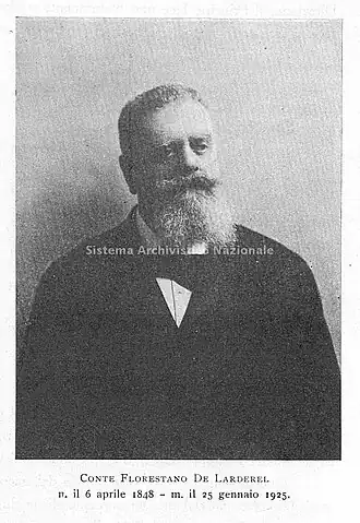 Fils de Federigo de Larderel, Florestano de Larderel devient membre de la députation provinciale de Livourne en 1876 et président du Conseil provincial de Livourne en 1891.