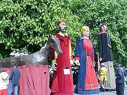 Si les « Goliath » (le nom générique désigne l’ensemble de la famille) étaient initialement 5 (pour rappel donc, Goliath, sa dame, deux filles et un fils), il n’en subsiste aujourd’hui plus que le couple parental. À ce duo, s’ajoutent le cheval Bayard et les quatre fils Aymon issus de la légende de Bayard, ainsi qu’une cohorte de chevaux Godins, personnages burlesques, porteurs de « chevaux à bretelles » (encore appelés chevaux-jupons), dont la mission est à la fois de tenir le public hors de l’espace de progression des géants mais aussi de taquiner celui-ci en donnant régulièrement l’impression de foncer sur la foule, pour changer de direction à la dernière seconde.