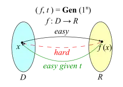 - ↑ Pour que la notion ne soit pas creuse, il faut bien entendu que la trappe ne soit pas elle même facile à calculer à partir d'une représentation de la fonction.