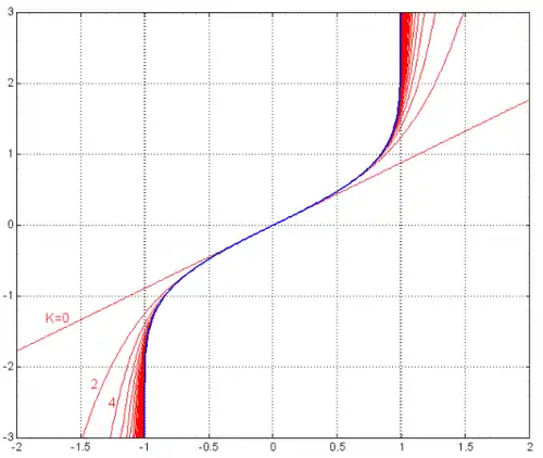 (approximation proposée par E. Robert, 1996 ; Elle approche partout la fonction erf à moins de 2,2 × 10−2 près. L'approximation s'améliore pour être inférieure à 10−2 pour ).