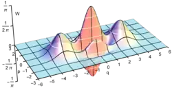 où ψ est la fonction d'onde définie dans l'espace des positions, et x et p sont la position et l'impulsion, mais pourraient être n'importe quelle paire de variables conjuguées (par exemple parties réelles et imaginaires du champ électrique ou fréquence et temps d'un signal). Notez que W(x,p) peut être non-nulle dans des domaines où la fonction d'onde s'annule ("battements").