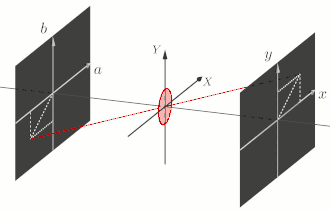 Les fréquences maximales enregistrées par le système imageant sont soit limitées par le système optique par effet de diffraction, soit par le capteur à cause de la taille des pixels par exemple[6]. Dans de nombreux cas, si l'objet est suffisamment éloigné, on considère que l'image se forme au voisinage du plan focal de sorte que .