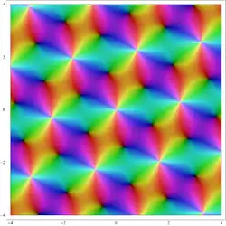 Graphe sur le plan complexe de la fonction elliptique de Weierstrass , avec comme invariants et .