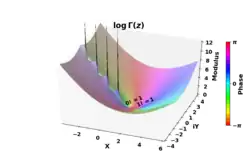 {\displaystyle {\begin{matrix}\ln \circ \,\Gamma :&\mathbb {R} _{+}&\longrightarrow &\mathbb {R} \\&x&\mapsto &\ln(\Gamma (x))\end{matrix}}}