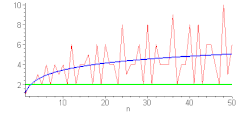 La fonction d est très irrégulière : elle prend la valeur 2 pour premier, et prend aussi des valeurs arbitrairement grandes (par exemple N + 1 pour n = 2N) . Mais en moyenne de Cesàro : .