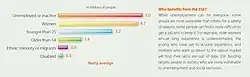 Les bénéficiaires des projets du FSE sont très variés : travailleurs individuels, groupes de personnes, secteurs industriels, syndicats, administrations publiques ou entreprises individuelles. Les groupes de population vulnérables, qui ont des difficultés particulières à trouver un emploi ou se maintenir dans l'emploi (par exemple les demandeurs d'emploi de longue durée), font partie des publics cibles prioritaires de ces projets. À titre indicatif, on[Qui ?] estime que plus de 9 millions de personnes issues de ces groupes vulnérables bénéficient tous les ans d’une aide liée à leur participation à des projets du FSE (voir tableau 1).