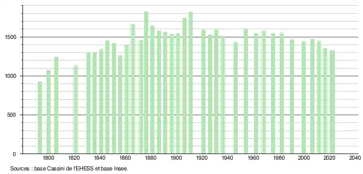 - ↑ Fiches Insee - Populations de référence de la commune pour les années 2006, 2007, 2008, 2009, 2010, 2011, 2012, 2013, 2014, 2015, 2016, 2017, 2018, 2019, 2020, 2021 et 2022.