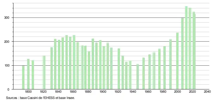 - ↑ Fiches Insee - Populations de référence de la commune pour les années 2006, 2007, 2008, 2009, 2010, 2011, 2012, 2013, 2014, 2015, 2016, 2017, 2018, 2019, 2020, 2021 et 2022.