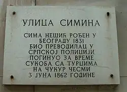 Au même emplacement se dressait autrefois la vieille fontaine de Čukur, une de ces fontaines qui approvisionnèrent les Belgradois en eau jusqu'en 1892, moment où fut construit un système de canalisations en plomb. Ce site fut le théâtre d'un événement qui opposa un jeune garçon serbe nommé Sima Nešić, aux soldats turcs en 1862. Cet événement fut à l'origine de la libération définitive de Belgrade vis-à-vis de la Sublime Porte[1].