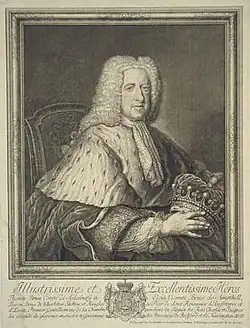 - ↑ Undecim vero post annis/Pace ubique terrarum firmata/Joannes Bruce haeres erigi curavit,/Francisco Lotharingo Rom(anum) imperium/Et Maria Theresia Caroli VI f(ilia)/Regna paterna fortiter vindicata/Feliciter et gloriose tenentibus/Carolo Lothar(ingo) Belgii gubernatore.
