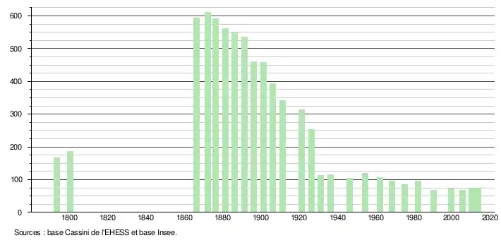 (Sources : Ldh/EHESS/Cassini jusqu'en 1999[8] puis Insee à partir de 2006[9].)