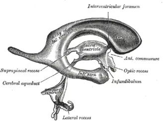 En neuroanatomie, les foramens interventriculaires[1] (ou trous de Monro en ancienne nomenclature), au nombre de deux, permettent la circulation du liquide cérébrospinal entre les ventricules latéraux et le troisième ventricule.