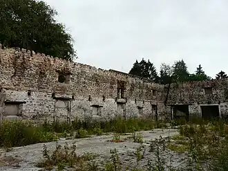 L'intérieur du bâtiment ruiné de l'ancienne forge.