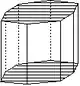 - les « formes ouvertes » dont les faces ne forment pas rigoureusement un volume ; une ou plusieurs faces du volume n'appartenant pas à la forme cristalline. Dans les représentations graphiques, on reconnaît ces formes à l'absence d'une ou plusieurs faces ; absence qui peut être figurée par exemple à l'aide de polygones hachés comme ci-dessous ;