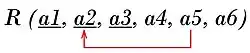Dans les articles qui suivent, nous prendrons comme exemple théorique, une relation notée R ayant les attributs A1, A2, A3, A4, A5, A6 dont les trois premiers sont le déterminant et les trois derniers le déterminé.