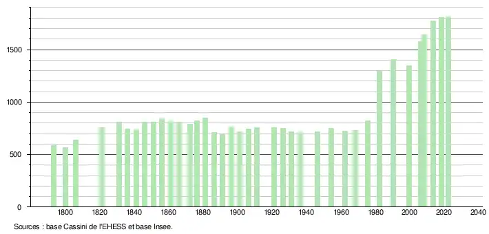 - ↑ Fiches Insee - Populations de référence de la commune pour les années 2006, 2007, 2008, 2009, 2010, 2011, 2012, 2013, 2014, 2015, 2016, 2017, 2018, 2019, 2020, 2021 et 2022.