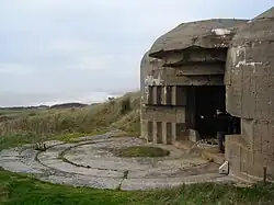 En arrière de chaque pièce est construit, au début de la guerre, un bunker type FK pouvant loger 24 à 27 artilleurs. L'abréviation FK signifie Festungbau-stab der Kanalküste (abris de forteresse pour les troupes protégeant les côtes de la Manche)[2].