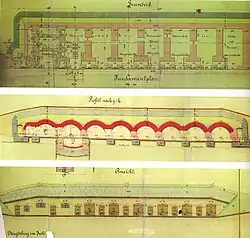 | Entrepôt IIb | 1890/91 | dans les années 1920 démolition totale, contour du terrain conservé comme espace vert | 52°08′N 11°39′E / 52.14°N 11.65°E | ||