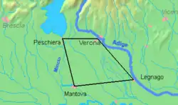 - (it) Cet article est partiellement ou en totalité issu de l’article de Wikipédia en italien intitulé « Fortezze del Quadrilatero » (voir la liste des auteurs).