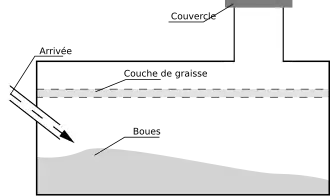 En théorie, les eaux de lavage n'y sont pas déversées, cependant une certaine quantité d'eaux grasses peut se trouver dans le bassin. La graisse surnage.