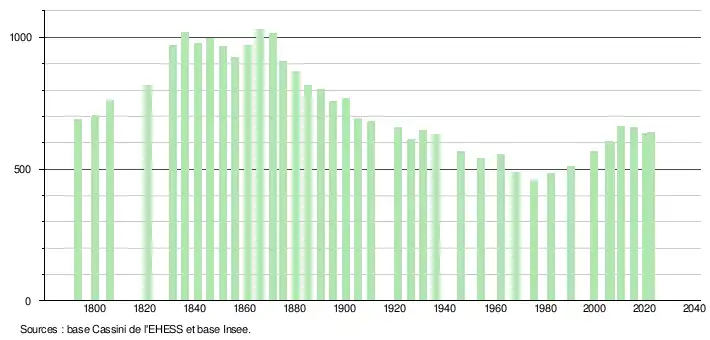 - ↑ Population municipale de référence en vigueur au 1er janvier 2025, millésimée 2022, définie dans les limites territoriales en vigueur au 1er janvier 2024, date de référence statistique : 1er janvier 2022.