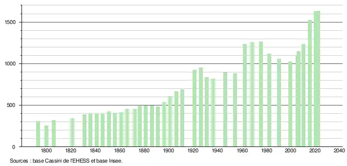 - ↑ Fiches Insee - Populations de référence de la commune pour les années 2006, 2007, 2008, 2009, 2010, 2011, 2012, 2013, 2014, 2015, 2016, 2017, 2018, 2019, 2020, 2021 et 2022.